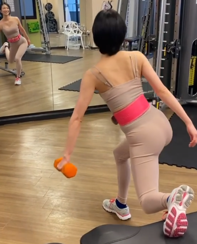 この日からパーソナルジムに通い始めた芹那さん。投稿写真ではベージュのスポーツブラとスパッツ姿を公開しています。