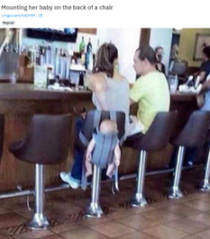ちなみに昨年末にはバーで、椅子の背もたれに抱っこ紐ごと赤ちゃんをぶら下げる女性の姿が撮影され、投稿型ソーシャルサイト「Reddit」で大炎上していたこともあり、親の資格がないと言えるのではないでしょうか。