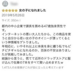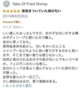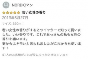 年を取るにつれて臭いは消し、少女風の花の香りがするなんて! まるで「女子高生の匂い」がするようだと買い始めたおじさんたちは自分たちもカスタマーレビューで実証し始めました。