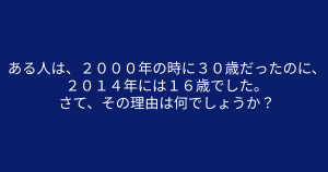 ある人は、2000年の時に30歳だったのに、2014年には16歳でした。