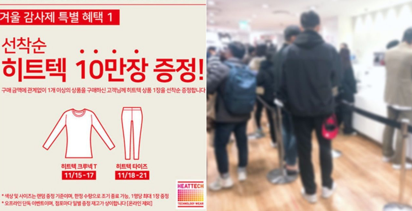 日本の輸出規制で不買運動が起こった韓国のユニクロでは、最近になり15周年記念感謝イベントで代表商品であるヒートテックを無料で贈呈するイベントを実施。ユニクロが準備したヒートテックの在庫は10万枚のようで、イベントが始まった11月15日直後の翌日であり、週末である16~17日に多くの客が押し寄せ、品切れになったといいます。