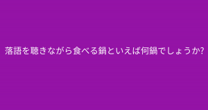 ”落語を聴きながら食べる鍋といえば何鍋でしょうか?”頭の回転が速い人には簡単に解けるクイズ問題 今回ご紹介するのは脳トレクイズです。 問題 落語を聴きながら食べる鍋といえば何鍋でしょうか? Google ADVERTISEMENT Google あなたはわかりましたか? それでは答え合わせに行きましょう! Google 答えは、、、「寄せ鍋」 ADVERTISEMENT 落語のことを「寄席よせ」と言います。寄席で食べる鍋だけに、「寄せ鍋」が答えになります。 Google あなたは間違えずに解けたでしょうか! ADVERTISEMENT Google [著作権者VONVON /無断コピー、無断転載および再配布禁止(違反時の法的措置)