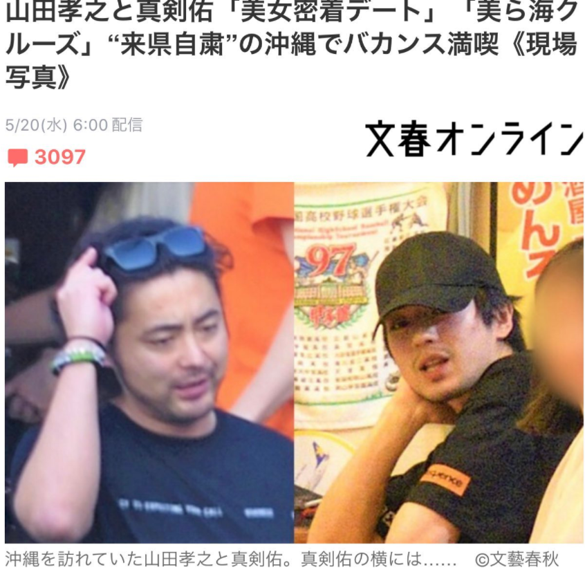 今年5月、コロナ禍で外出自粛が叫ばれ、感染者が急増していた沖縄県知事自ら「他県からの来訪は控えていただきたい」と要請していたにも関わらず、俳優仲間と旅行していたことが発覚した山田さん。