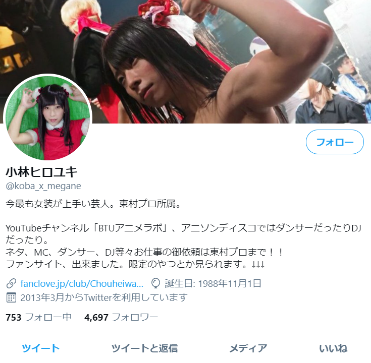 写真の主人公は、コメディアン 小林ヒロユキさんです。 普段、女性よりもきれいな容姿を誇る彼は、SNSにたびたび女子高生のコスプレ写真を掲載していました。しかし、彼は最近ファンを幻想から覚ましてしまったのです。ツイッターに上着を脱衣した写真を掲載したんでした。