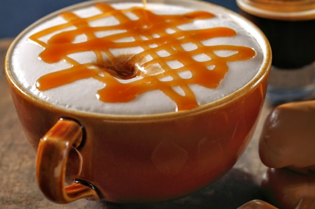 疲れた時にキャラメルマキアートを飲むと元気になれますよね。ミルクは上半分ほどが泡立ててあり、軽い口当たりが楽しめます。格子状に描かれたキャラメルソースがトレードマーク。