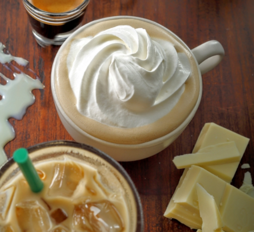 ラテにホワイトチョコレートシロップを加えた苦甘いホワイトモカは、ホワイトチョコが濃厚でホイップクリームも乗っているので、甘いもの好きの方におすすめです。無料でキャラメルソースを追加でトッピングするのが人気カスタマイズのようです。