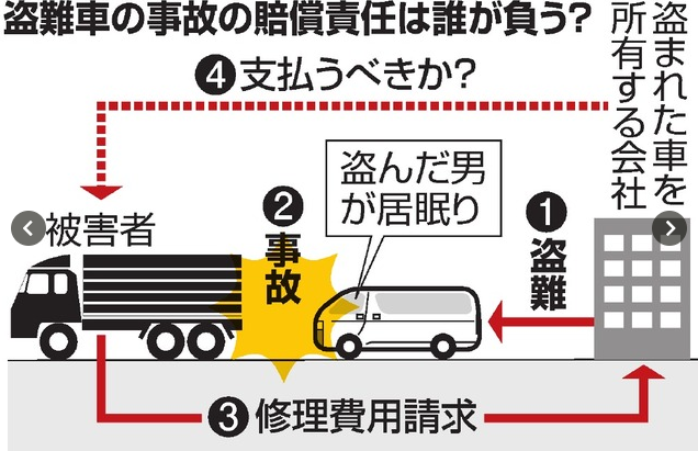 管理に不備があって盗まれた車が交通事故を起こした場合、賠償責任は車の所有者にあるのか…。