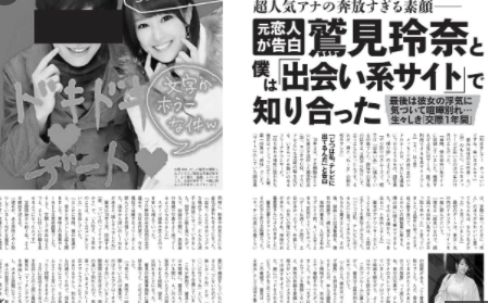 発売中の写真誌「FLASH」では、5年前の元恋人との交際を詳しく報道。元恋人によると、当時、入社2年目の鷲見アナと、2014年11月に「出会い系サイト」で出会ったといいます。