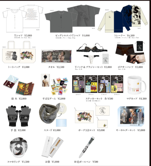 〝二歳〟というアルバム名にちなんだグッズを展開したり、Tシャツやタオルといったおなじみのものから、絵本や「すばるゲーム」というカードゲームらしきものまで。
