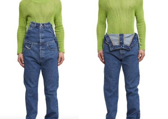 次に、デザイナーのグレン・マーティンスさんとディーゼルがコラボしたジーンズは、オーバーオールのように見えるがストラップがないためなんだか不思議な状態になってしまいます。まるでトイレに行った後、オーバーオールをちゃんと着られなくなった少年のようなやんちゃさを演出できるかもしれない…お値段は4万7965円。