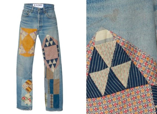 デニムブランド「B SIDES(ビーサイズ)」のジーンズ。ミッドセンチュリーのパッチワーク・キルトを再利用したというこだわりの商品だが、ちょっとレトロすぎやしないかい?履く人が履けばシャレオツな感じになるのだろうか・・・お値段は約4万6000円。