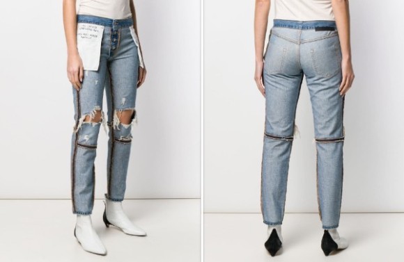 お次は、ちょっと!ジーンズ裏返しのまま履いてるよ!と思わずツッコミたくなりますが、これはこういうデザインだから大丈夫です。ファッションブランド「Unravel Project(アンレーベル・プロジェクト)」のコレクションで、お値段6万4629円!高いです!