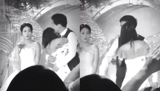 それは中国での出来事。とある新郎新婦の結婚式に元カノが現れたことでその場が大騒ぎしてしまったようです。女性は結婚式の招待客だったようで、突如新郎の元に走っていってはハグ。さらにハグだけでは物足りなかったのかキスまで始めます。2人は現在別れた間柄ながらも、現在は友達として仲良くしているとのこと。