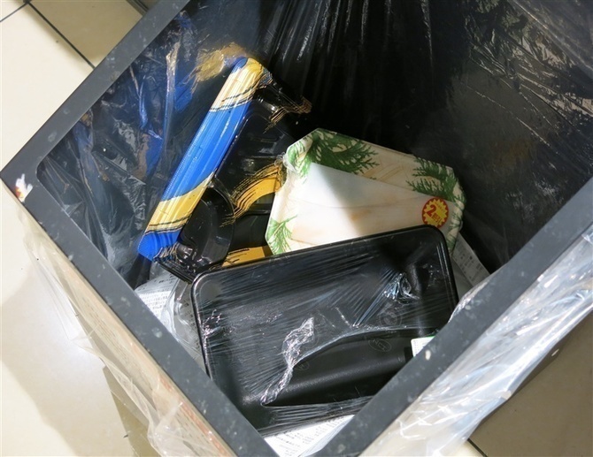 ところが別のチェーンからは、違う答えが返ってきました。「エリアによっては頻繁にあり、困っているんです」聞けば「くるりポイ」をする人の多くは中高年とみられる女性だそうです。菓子などの袋や紙箱を捨てる人もいて、特に肉の特売日はごみ箱から目を離すとすぐにトレーで満杯になります。洗ったトレーを回収するリサイクル箱に入っていることもあり、「ごみの分別が厳しい地域なので、持ち帰りたくないのかもしれません」。