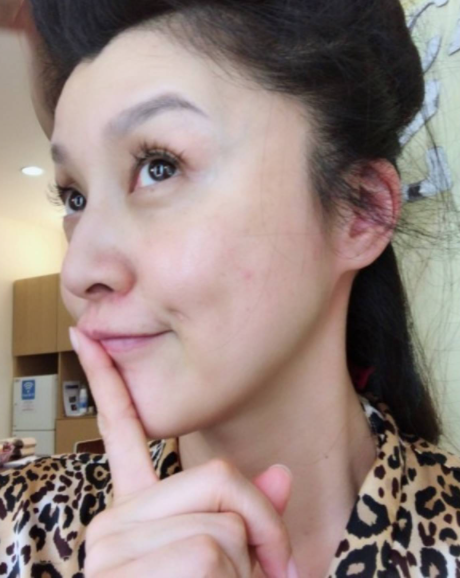 ブログでCM撮影のため、メイクを落としてすっぴんになったことを報告。上目遣いでアヒル口をし、人差し指を唇に当てて茶目っ気たっぷりの表情を見せています。まつ毛エクステをしていて、眉毛も書いているようですが、素肌は綺麗なのが分かります。