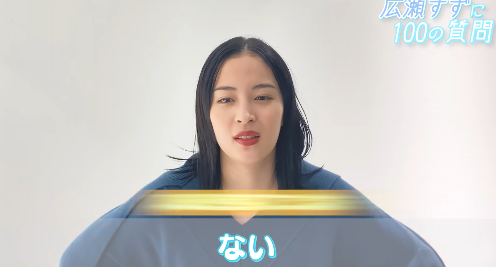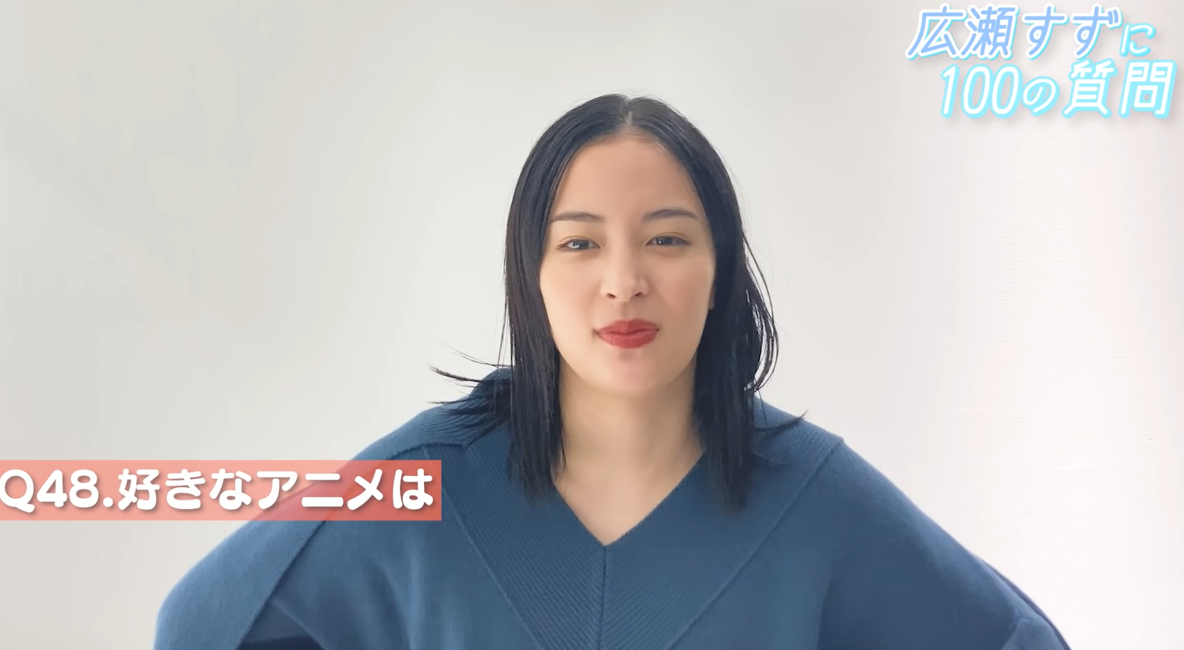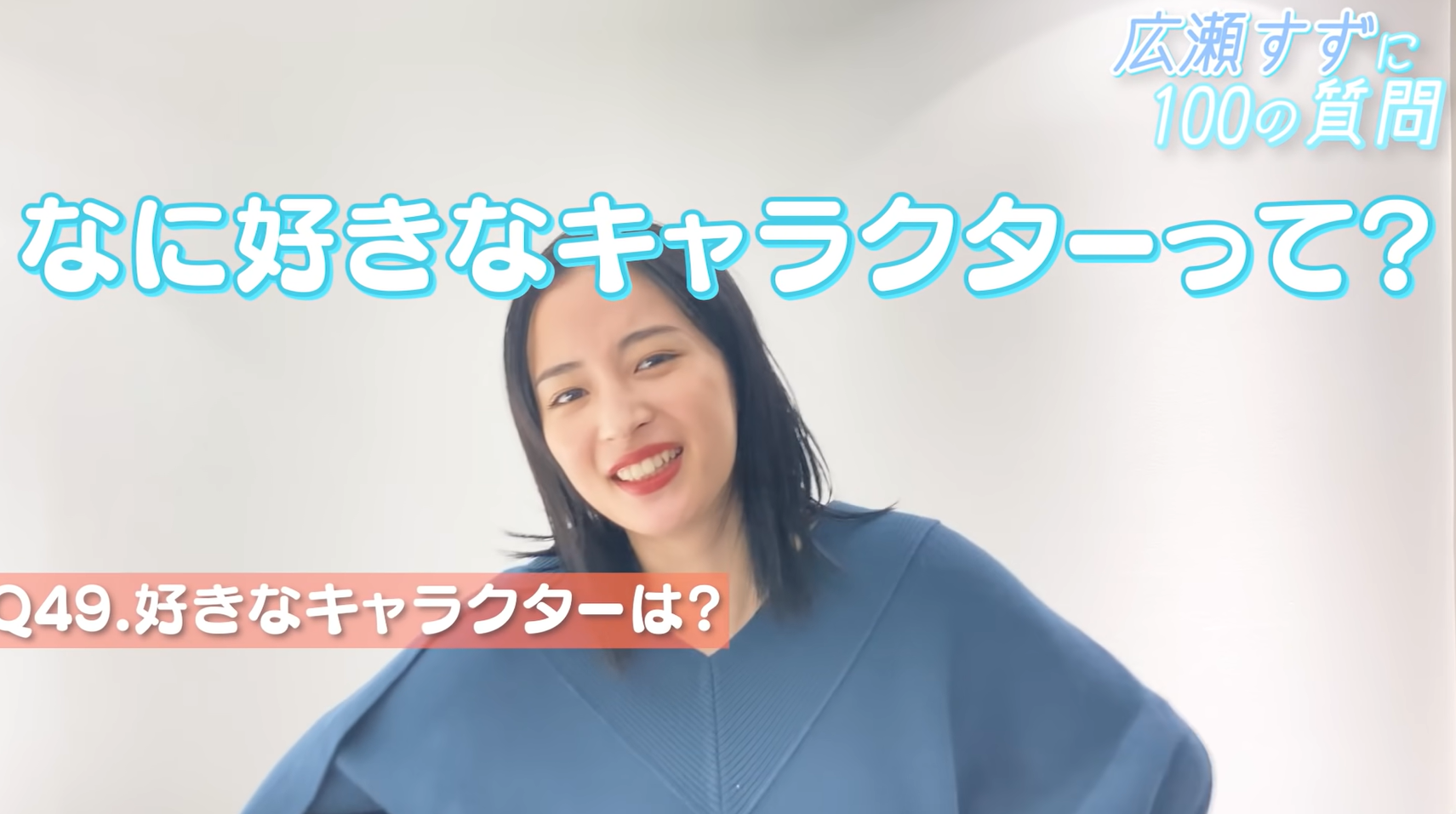 この動画で広瀬さんは好きな色・好きな芸人など、100個の質問に答えていきました。