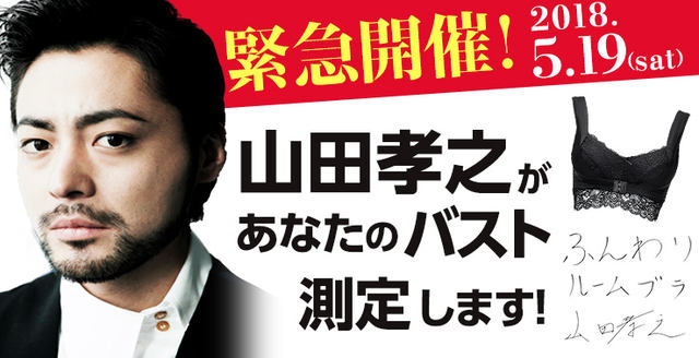 俳優の山田孝之が都内で行われた「ふんわりルームブラ バ◯ト測定」受付イベントで、約300人のバ◯ト測定に挑みました。