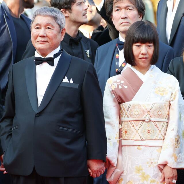 またレッドカーペットには20年に再婚した18歳年下の夫人と登場しました。彼女と公の場に登場するのは初めてで、着物姿で髪はボブヘアというスタイルでした。どこかミステリアスな雰囲気のある印象で、当初、北野監督の少し後ろを歩いていたが、写真撮影では西島や加瀬に促されて隣になりました。