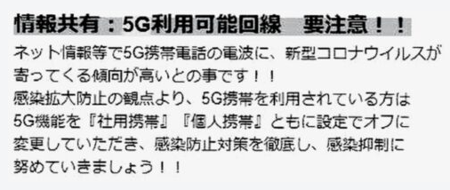 社員のA氏が明かします。「ギョッとしました。その後『5Gがコロナ感染を引き寄せる』という意味のことも言いました。まったく理解できず、不穏な予感がしました」