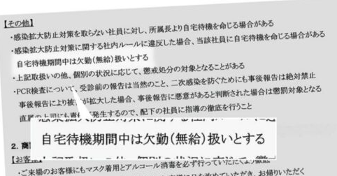 「この資料自体はワクチンに関する記述を避けて作られています。ただ、普段からワクチンを打てば自宅待機と言われているため、『自宅待機=無給』はワクチンを打った際にも適用されると多くの社員は理解しています」