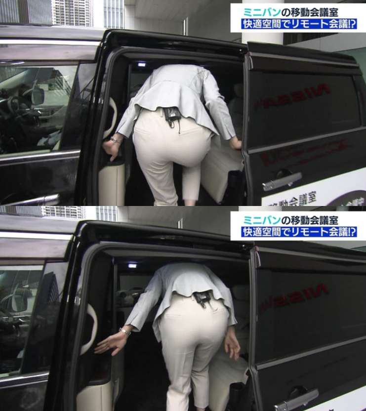 この日は大手自動車メーカーが開発中のリモート会議仕様のミニバンが紹介され、実際に田中アナが乗車してリポートを行いました。その模様は“桃ヒップ強調”だったとか。