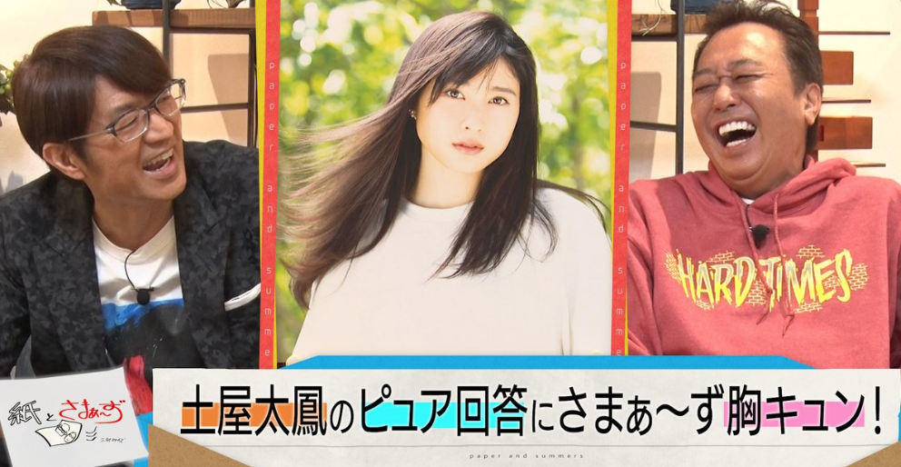 以前放送『紙とさまぁ~ず』(テレビ東京系)で、女優・土屋太鳳のアンケート回答をもとにトークを展開しました。土屋の「好きなご飯のお供ベスト3」にさまぁ~ず・大竹一樹と三村マサカズから疑問の声があがりました。さまぁ~ずがアンケートを作成しゲストが回答をするという内容で、その回答だけを頼りに、ゲスト不在でさまぁ~ずがトークを展開します。