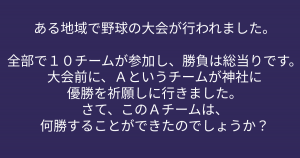 大会前に、Aというチームが神社に優勝を祈願しに行きました。