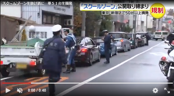 スクールゾーンに侵入してきた車が次々と警察官によって止められ、摘発を受けています。