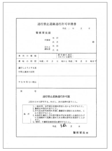 スクールゾーンのように、車両の通行が禁止されている道路では「通行禁止道路通行許可証」が必要となります。