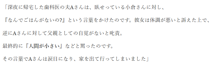 「人間が小さい」と夫に向かって吐き捨ててしまったようなのです。