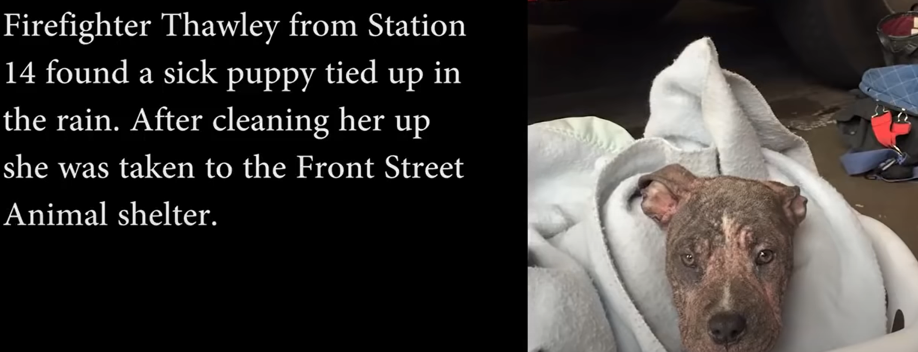 メディアによると、消防士のマイクは2016年に雨が降っていたある日、木に子犬が縛りつけられているという通報を受け、現場に出動しました。そこには小さな子犬が身動きもできない状態でいたのです。