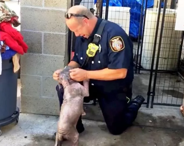 鳥にに噛まれたのか全身が皮膚病で覆われている状態の子犬。マイクは子犬を直ちに救出し、消防署に連れて来てはすぐに風呂に入れてあげました。しかし、いつまでも消防署で子犬の面倒を見ることはできない状況。マイクは近くのある保護所に子犬を送るしかありませんでした。