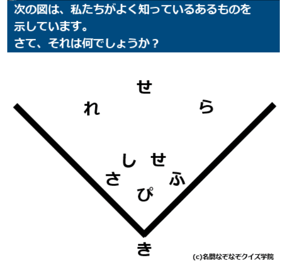 問題文のひらがなは、「野球」のポジションの一文字目が書かれていました。図が野球場の形となっており、これがヒントになっています。