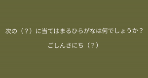 ”(?)に当てはまるひらがなは、、、?” 問題文をよくみて解いてみましょう 今回ご紹介するのは脳トレクイズです。 問題 次の(?)に当てはまるひらがなは何でしょうか? ごしんさにち(?) Google ADVERTISEMENT Google あなたはわかりましたか? それでは答え合わせに行きましょう! Google 答えは、、、「い」 ADVERTISEMENT 問題文を右から左に読むと、 「(?)ち に さん し ご」 と、数字が順番に並んでいることがわかります。 「2(に)」の前は「1(いち)」ですので、「い」が答えになります。 ADVERTISEMENT Google あなたは間違えずに解けたでしょうか! Google [著作権者VONVON /無断コピー、無断転載および再配布禁止(違反時の法的措置) ADVERTISEMENT
