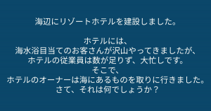 そこで、ホテルのオーナーは海にあるものを取りに行きました。