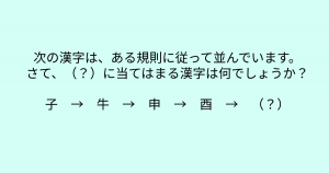 そのため、(?)の中には、干支の漢字かつ五を含む漢字を入れる必要があります。よって、「丑」が答えになります。
