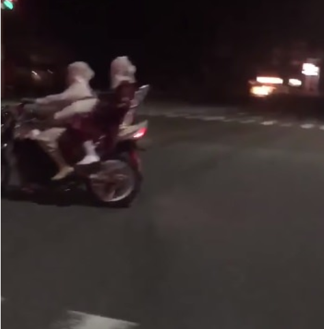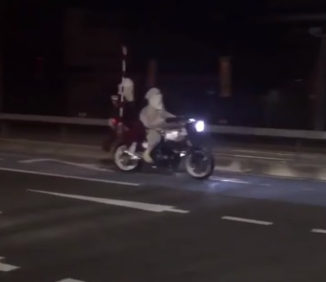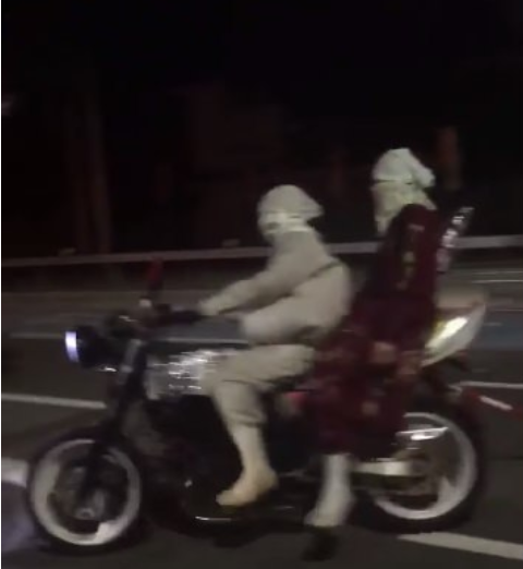 どうやら、暴〇族はバイクを放置したままに逃走してしまったようです。