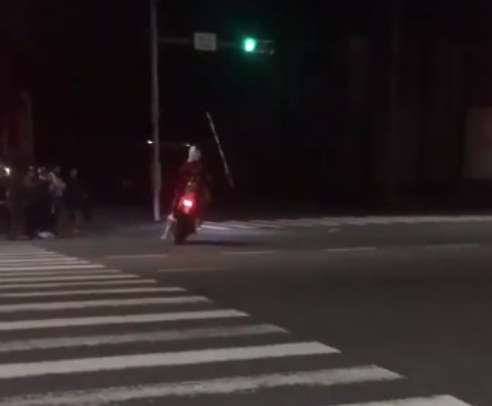 警察から取り上げた警棒を持って、走り回る暴走族。