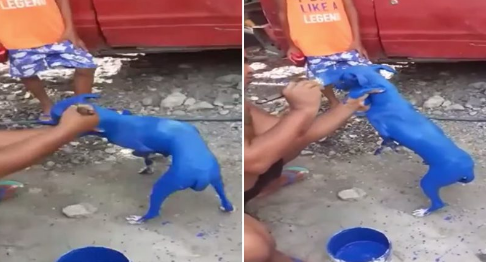 それはドミニカ共和国での出来事。とある家庭で飼われている飼い犬の全身に青のペンキを塗る動画が拡散され、騒動になっています。飼い主が飼い犬の体をガシッと掴んでいることから、飼い犬は身動きができず、ただ怯えるしかありませんでした。