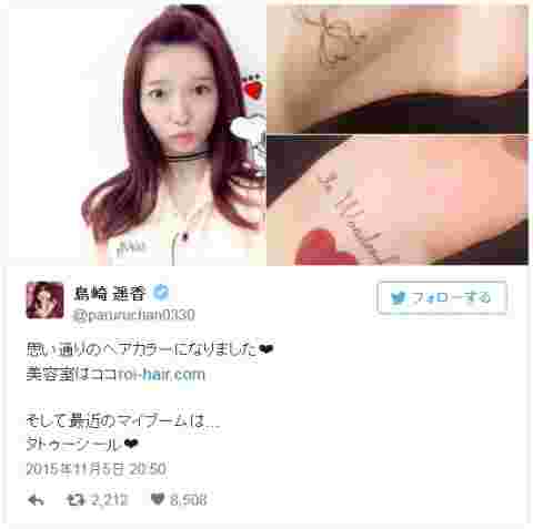 島崎さんは以前に、タトゥーシールがマイブームだと公表したことがありました。