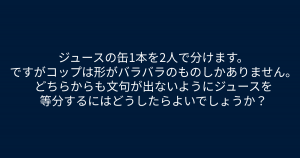 どちらからも文句が出ないようにジュースを等分するにはどうしたらよいでしょうか?