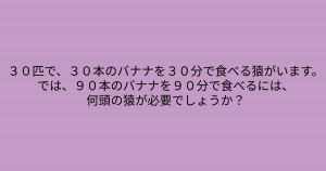 では、90本のバナナを90分で食べるには、何頭の猿が必要でしょうか?