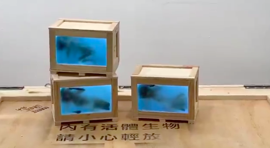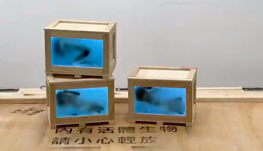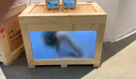 この木箱は、以前開催された国際アートフェス「ART TAIPEI 2019」で展示された作品です。思わず「ぎょっ」と立ち止まってしまいそうな光景ですが、本当に人間が入っているのではなく、実はこれは、はめ込んだ液晶画面に映像を流しているのです。