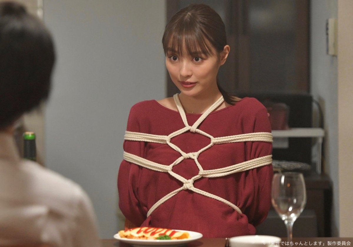 内田理央主演のドラマParavi「来世ではちゃんとします3」(テレビ東京・1月4日から毎週水曜深夜0時30分〜)を公開を前に、衝撃の第1話の場面カットが披露されました。今作も内田のコスプレ緊縛が注目を集めています。
