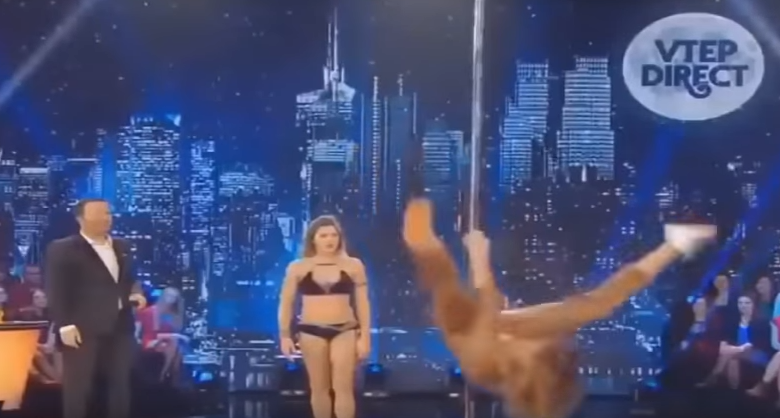 10. ポールダンスに失敗し真下に落ちてしまいます。