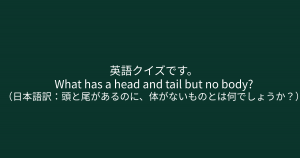 (日本語訳:頭と尾があるのに、体がないものとは何でしょうか?)