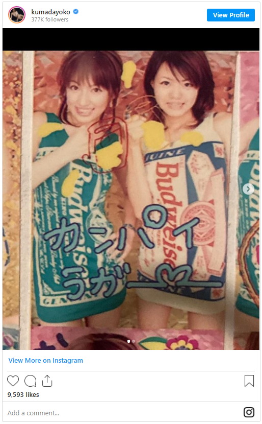 「もうすぐ38歳が終わる。お誕生日当日にYouTubeLiveをしたくてそこで生い立ちを振り返りたいと思い、写真を整理してるの」と報告した熊田さんは 5月13日に39歳の誕生日を迎えます 。続けて「看護学生の頃のお友達が 写真を送ってくれた。 20歳くらいの写真かなぁ。プリクラでコスプレしてるバドガール…」と、写真を添え紹介しました。