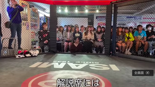 安全面はしっかり考慮し、ガチンコで行われた今回の試合ですが、なんと観覧のための事前応募者は1500人以上。この中から選ばれた150人に見守られ、さらに何とこの試合のスペシャル解説にはRIZINのヒロイン浅倉カンナさんがやってきました。 試合は1Rから激しい熱戦となり、2Rはさおりんが払腰気味に倒して坂口の上になりパウンドし、また坂口がこれも意地を見せ返すという素人同士とはとても思えない攻防に!