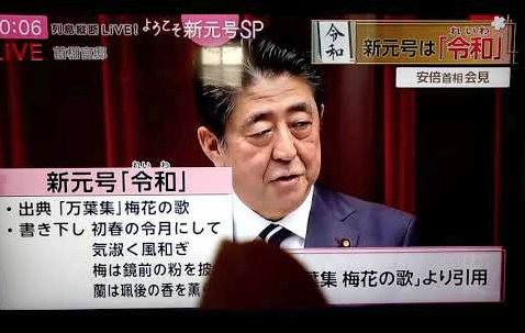 【関連記事】菅官房長官により新元号発表!!新元号は「令和」、その典拠は…
