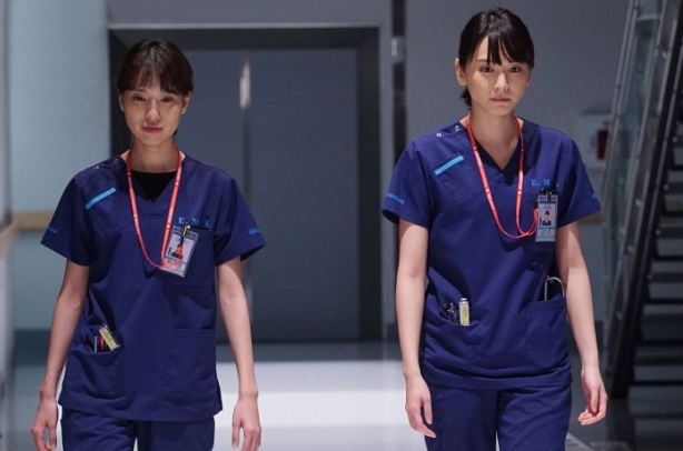 戸田恵梨香演じる緋山が何らかの感染病の疑いで隔離されることとなり、血液検査の結果が出る日の早朝に、新垣結衣が演じる白石が緋山の病室を訪問した時のシーン。